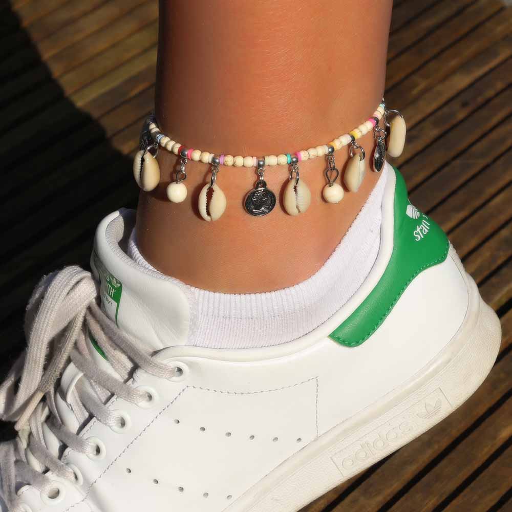 Het beige schelpen enkelbandje van Juwelia, de zomer spettert er vanaf. Of je nou lekker naar het strand gaat of gewoon lekker over de boulevard gaat slenteren, dit enkelbandje is een ware eye-catcher. Garandeer jezelf van een prachtig sieraad om je enkel waarmee je er gewoon even tussenuit springt deze zomer. De schelpen enkelbandjes, schelpen armbandjes en schelpen kettingen vliegen de deur uit bij Juwelia. Combineer ze met een leuk setje schelp oorbellen. Schelpen zijn helemaal hot deze zomer. Zorg dat je ze in je sieradencollectie hebt.