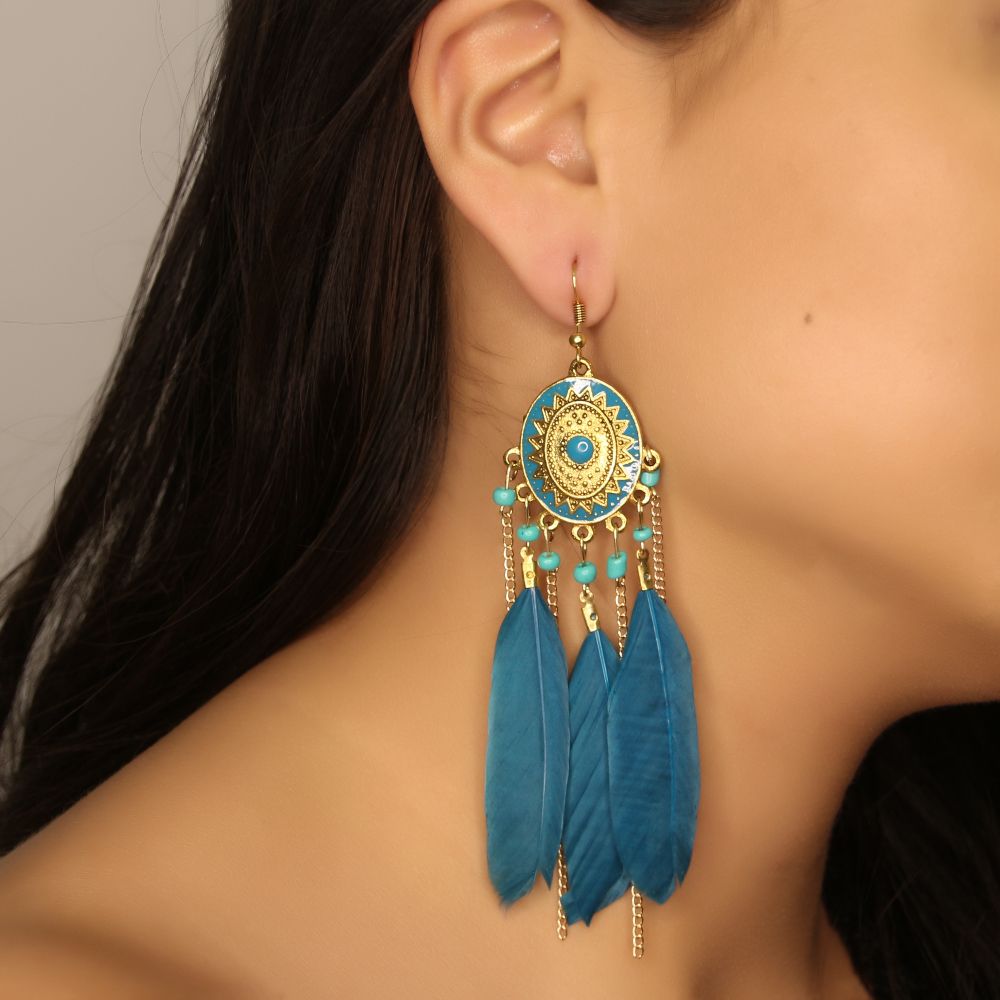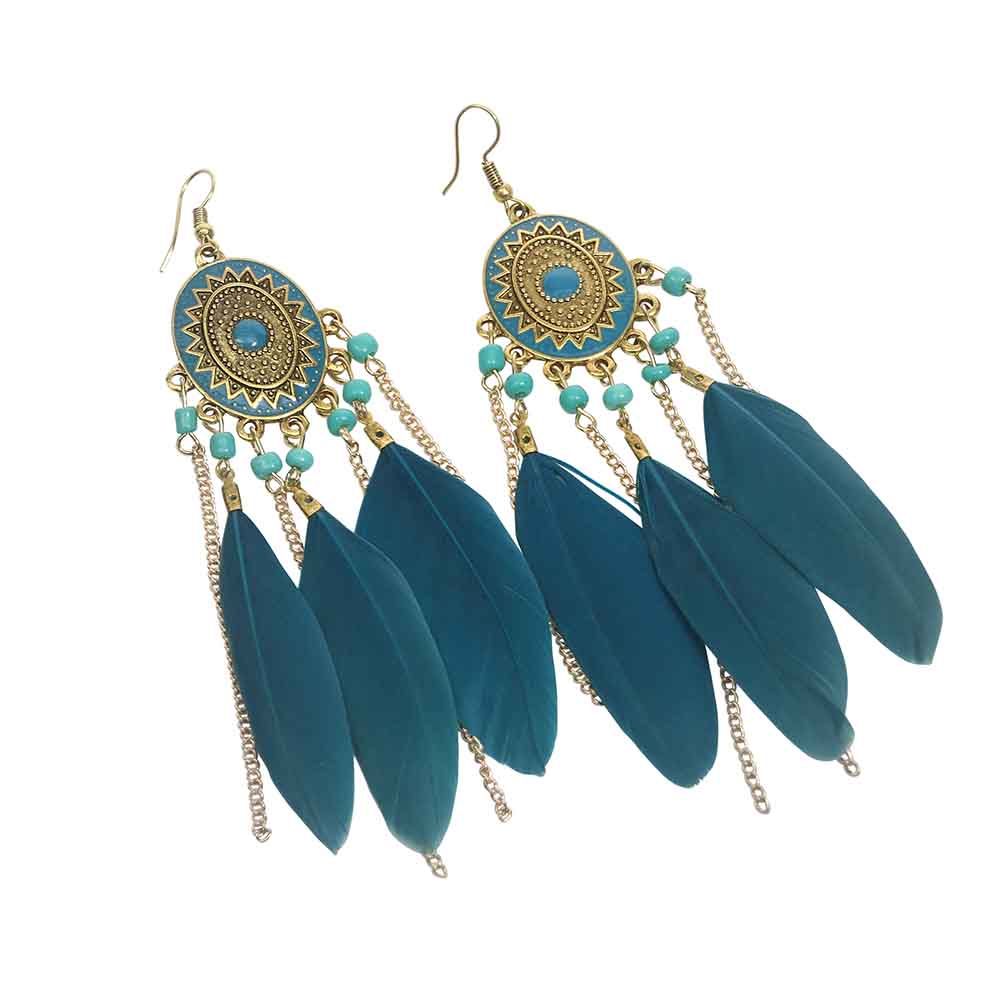 Met deze Bohemian Veer Oorbellen ben je helemaal één met de natuur. Deze Bohemian Veer Oorbellen Blauw kun je eigenlijk wel bij alles aan doen, juist hierdoor zijn ze zo universeel om te dragen. Het materiaal is geschikt voor alledaags gebruik. De grote veren van deze Bohemian Veer Oorbellen Blauw vallen lekker op en  zijn daarom ook superleuk om te dragen naar een festival of bijvoorbeeld op vakantie naar Ibiza. Voor zij die op willen vallen en die wel houden van een leuke vorm, zullen met deze Bohemian Veer Oorbellen Blauw echt iets super leuks aan hun collectie toevoegen.