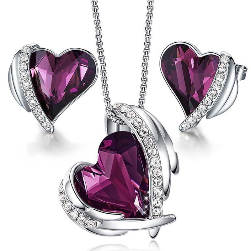 2 reviews for Paarse Swarovski Hart Ketting en oorbellen