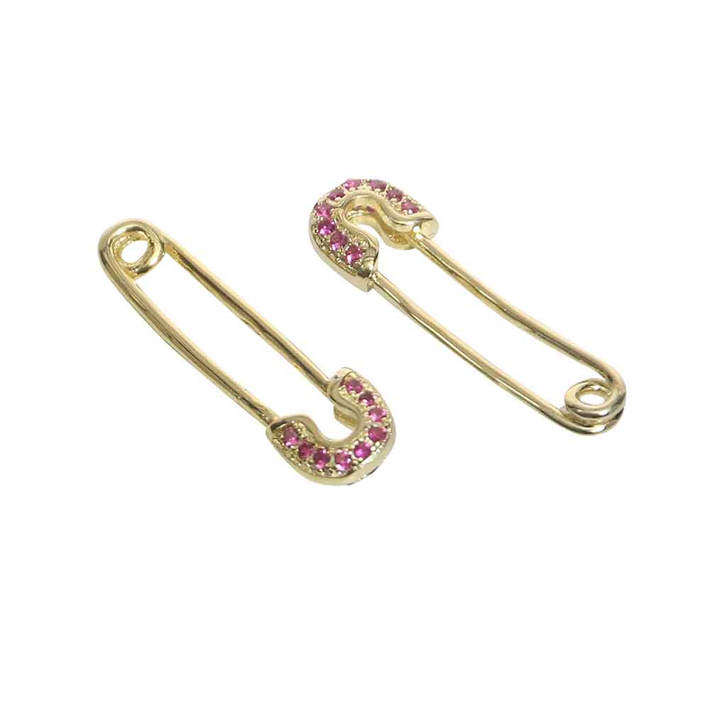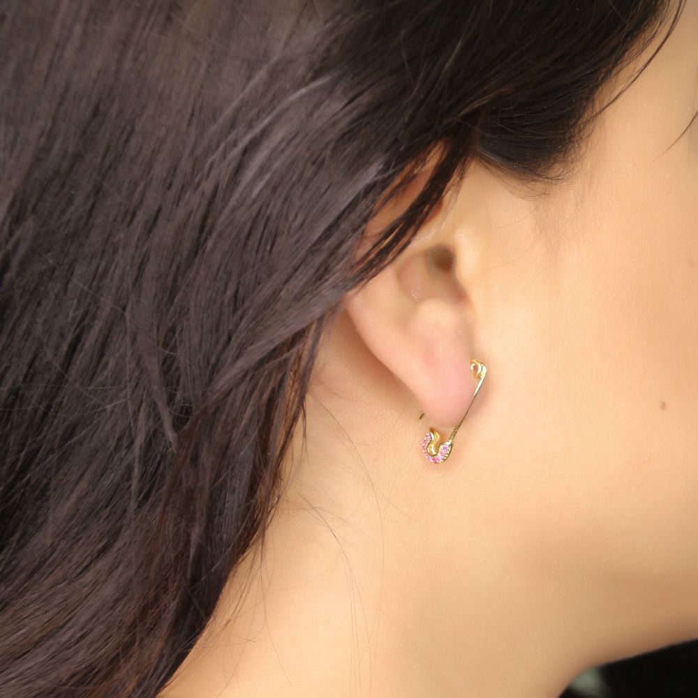 Safety Pin Oorbellen Roze Strass